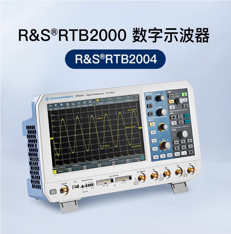R&S®RTB2000 示波器“十”力优异,它将 10 位 ADC、10 Msample 存储和 10.1" 触摸屏以及智能操作理念精准结合,非常适用于大学实验室、嵌入式设计开发过程中的故障排除以及生产和维修部门。